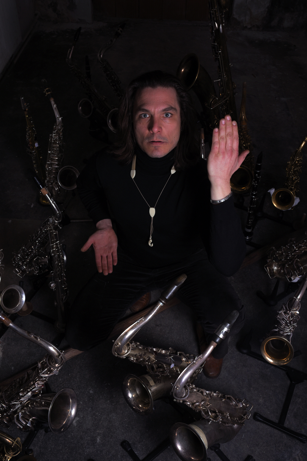 He is interested in the on-going developing process of flexible, harmonical intuition and rhythmical diversity, adapted in his continuous practice on the saxophone, staying in transition, drawing from influences of music from all over the world, from different times and simply from intense 'contact' with sounds in general.